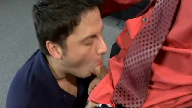 Kyle is just starting his delivery route and his first drop off of the day is Chris, who is admiring more than just his timeliness. Chris is a man of few words, but he convinces Kyle it's time to take a break and make a delivery into his ass.