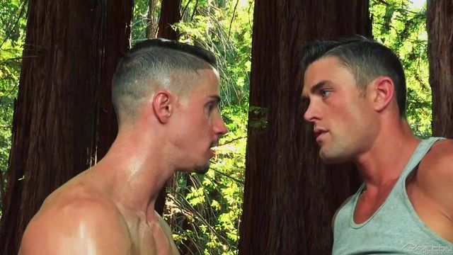 Ryan Rose is an adventurer in a virtual world seeking treasure and when he finds what he's looking for and avoids a booby trap, he's cornered by a crafty hunk with virtual superpowers, Skyy Knox. In the blink of an eye, Ryan is tied to a tree and before Skyy takes the coveted treasure, he decides to take a taste of the hunky specimen in front of him. He gets Ryan out of his pants to find a bulging set of tighty whitey briefs just waiting to be explored. Skyy doesn't waste a second getting Ryan's beautiful cock into his wide-open mouth and gets on his knees to service the stud. After getting Ryan hard as a rock, Skyy offers up his back door for Ryan to enter. Ryan is still tied to the tree so Skyy does most of the work as he gets Ryan as deep inside of him as he can. As Skyy rides the big dick, Ryan works his way free and takes over as the dominant to continue pumping Skyy. Ryan's sexual prowess is like nothing Skyy has ever experienced before. With Ryan still planted deep inside him, Skyy lets go and covers the ground with cum. Ryan sees the forest floor get drenched and decides to finish off on Skyy's face. He pulls out of Skyy and carefully aims into his hungry mouth. Skyy shares his reward with Ryan as the two kiss to swap Ryan's creamy love. Anything can happen in this world of intrigue and double-crossing, and when these two are vulnerable and naked in the woods, they learn their lesson the hard way.