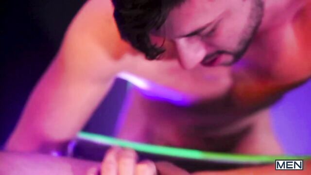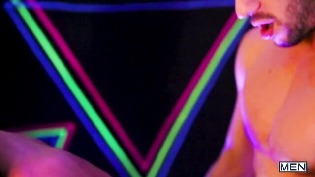 Aston Springs and Scott DeMarco are here to take you back to the neon-hued triple-x excess of the 1980's. These two muscular hunks swap passionate blowjobs before Scott starts exploring Aston's body with his tongue, rimming his ass long and deep. Aston spreads his hole for Scott, letting the dark-haired stud pound him all over a neon CRT dreamscape until both hunks are ready to bust their loads.
