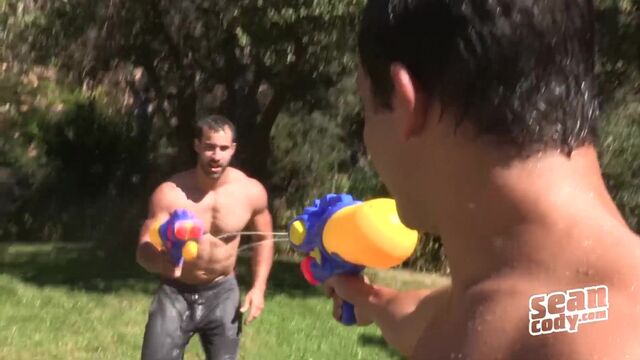 - Description: What better way to get acquainted with somebody you’re about to fuck than getting them all wet in a water gun fun? Well, there are many great ways, but who doesn’t enjoy guys in wet shorts? Joe certainly soaked it all in with every squirt to the body and face, foreshadowing what was to cum in the near future. “That’s a really nice ass…can’t wait to put my dick in there!” While Randy was eager to give it, Joe couldn’t wait to get it, so we moved the party indoors where the real fun could start!