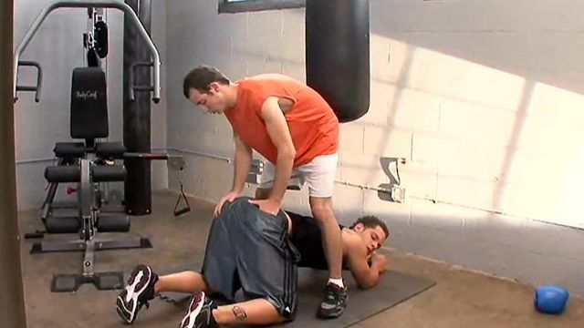 Cory is taking out some pent up aggression on the punching bag, but it isn?t quite what he's looking for. When he looks around for something else in the gym he could use, Kevin catches his eye, and that's when he decides to punch that tight ass.