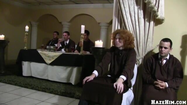- Description: This weeks haze submission is rather odd. the brothers at *** filmed one of their induction ceremonies. The brothers were dressed in dark robes and had their pledges strip down for a final examination and psychical test. The pledges passed the test with flying colors but before they were fully accepted into this brotherhood one of the pledges had to give it his all and by that we mean his ass. Muff Meat was chosen from the three to suck off and get fucked by one of the brothers. at first he was hesitant and it seemed like he wasn't going to go through with it. but he manned up and took that dick like a man.