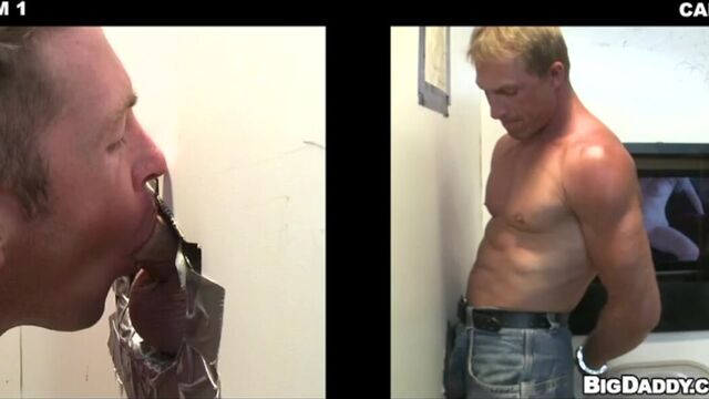 Today my buddy Troy keep telling that he would love to experience the glory hole atleast once in his life. So today just happens to be his lucky day. He jumps right into and pulls his cock out to get service. Lets just say that he was totally amazed, especially when the guy came over to fuck him nice, lol