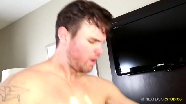As he stares out the window at the approaching morning, Beau Reed can feel lover XL coming up behind him. XL, fresh out of the shower, is ready to start the morning right, and Beau is definitely down with the program, as he sits XL back on the sofa and proceeds to suck him off, taking XL's long dick all the way down his throat before tongue fucking XL's hole. Beau plunges his cock deep inside XL and has a go at it before they switch. Now standing, XL slides his thick slab of meat between Beau's cheeks and fucks him hard from behind, pounding his ass before letting Beau take a nice ride. Beau grinds on XL's dick as XL lifts him up and sets him back down on the couch. He begins to fuck Beau hard again and Beau loses his nut, spitting onto his stomach as XL continues to pound away. He pulls out and blasts Beau's face with his load, coating his lover's mouth with a morning mouthful.Enjoy!
