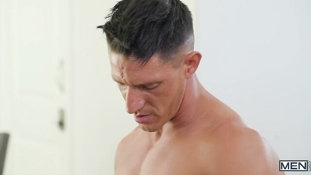 Argos can't take his eyes off of his hot step-dad Jax. He's decided that enough is enough and he's going to do whatever it takes to seduce him. The fit dark haired cutie shows off his rock hard body and perfect ass, but nothing is getting Jax's attention. However, when Argos sustains a light cranial trauma from an ill-placed rake, Jax's paternal instincts kick in and Argos has the perfect opportunity to make his interest known. Argos sucks the fit daddy's cock long and deep, working it hard with his hands and mouth. Jax can't hide his excitement pounding the bearded stud's tight hole until they both shoot their huge creamy loads.