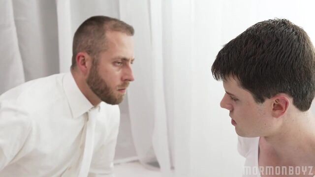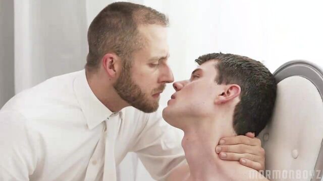Elder Jones fidgeted in his seat, trying to get secure and comfortable. His palms were sweaty and he felt heat rising around hisshirt collar. He couldn’t be sure, but he felt like his cheeks were flushed. He couldn’t remember a time he was more vulnerable and more discomfited.President Lewis had asked him question after question about his sexuality and sexual history, probing, invasive questions that Elder Jones felt very strange hearing, let alone answering. He was asked about pornography, masturbation, sexual fantasies… Elder Jones wasn’t naive. He knew well about sex and desire. Especially since he began his mission...The young man had been struggling to reconcile his calling and his time as a missionary with the frequently recurring thoughts of the men in the church. He noticed their beautiful faces, all smiling and eager, looking back at him and filling him with new feelings. He noticed their bodies, filling out their fine suits and athletic wear on P-day exercises and games.But more than that, being surrounded by the handsome, older, leaders and caused his mind to wander into new and unexpected areas.He didn’t mean to, but he frequently thought about them naked, wondering what their matured, seasoned bodies looked like… what they’d feel like. He’d never seen another man naked before, at least not in a sexual context. He wondered if they had penises as big as his and how they would fill out and become erect. This was especially true of President Lewis, who was now sitting inches away from him, questioning him about his secret thoughts.“Have you ever masturbated?” Lewis pressed on.Jones stammered out and unconvincing, “no,” causing the older man to laugh to himself, amused by the feeble attempt at a lie.“I’ll ask you again: have you ever masturbated?” Elder Jones stared at his knees, not wanting to make eye contact with this superior, as his nodded and conceded the truth.President Lewis asked him more personal questions. If he’d ever had sex, been kissed, been touched. Jones’ face became even redder as he tried to plead his innocence, but the older man’s expression never once indicated how he was being judged.Lewis leaned in closer, moving to the edge of his seat. He asked for the boy’s hand and pressed his fingers on the boy’s wrist. It was the same gesture Jones had seen when he visited the doctor. Lewis also moved a hand on the boy’s chest, pressing firmly against his body.Elder Jones knew he was checking his pulse, possibly to determine if he was lying or not. But he knew this was only going to implicate him more. His heart picked up its pace as he felt the man’s hand touch him. He’d never been touched before by an older man in this way--at least not one that he’d already thought about intimately.Lewis got what he needed quickly enough and released the boy from his grip, though Jones was even more flustered and unsure of himself.“Have you ever been aroused by another boy or man?”“No!” Jones spouted out quickly, plainly overcompensating for his current state.“Are you willing to prove that you’re telling the truth?” President Jones asked.“Of course.”“Good. Then get up and get undressed…”Elder Jones was startled to hear this request. It seemed unorthodox and inappropriate, but he knew he had to do as his leader asked. He stood up and tentatively began to unknot his tie and remove his shirt. All the while, he looked over at President Lewis and saw his eagle eyes watching him closely.Elder Jones was nervous what the older man had in store for him, but was even more scared of the familiar stirring in his loins. Why was he being turned on? And why now? He feared greatly that an inopportune erection would spring up at that moment. And as he pulled off his pants, he knew that he had nowhere to hide his imminent arousal...