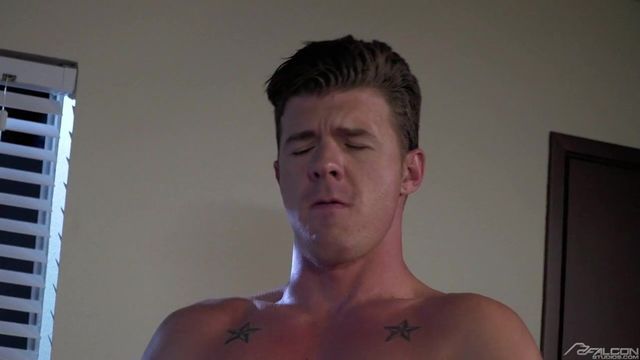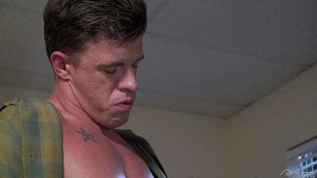 Fane and Dustin stop for the night at a roadside motel on Route 66. Fane is turned on by his buddy's hot body as Dustin gets out to the shower. And when Dustin talks about the hot gas station scenario, Fane gets totally horned up and makes up an excuse take a breather. He heads to the front desk to complain that the room doesn't have hot water. The slick and sexy hotel manager, JJ Knight, listens intently while he fucks Fane with his eyes. JJ can see some potential to get some action and slowly approaches Fane as he pours himself a drink and edges closer to the hot hunk. It's hard to miss the massive bulge in JJ's pants and when he pulls his extra-large member out from hiding, Fane is right there to suck it. JJ's dick is so big and thick that it's hard for Fane to fit the whole thing in his mouth. After getting JJ hard as a rock, Fane knows that the dick will fit much better in his tight ass. Fane bends over to offer himself up to the hung manager who gets him nice and open and lubed up with plenty of tongue and spitting action. When JJ is convinced that Fane is loose enough to take his massive pole, he stands up and slowly slides it deep inside his new guest. JJ goes slow and gentle at first and when he notices that Fane is used to the dick inside him, JJ picks up the pace and pumps Fane's ass harder and faster. Fane is ready to get stretched as much as possible and rolls over on his back to take the dick even deeper. The massive rod going in and out of him makes Fane explode with pleasure as he covers his stomach with sticky fun. JJ sees the mess and soon follows with a load of his own all over Fane's spent balls.