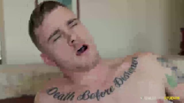 As Ryan Jordan unzips Mark Long's pants revealing his giant cock, Ryan is in awe of just how big it looks in person. He tentatively tries to take all of it in his mouth but knows that Mark's hung like a stallion and that it might be impossible. Still he tries his best, gagging on Mark's meat pole and working his balls with his tongue. Mark tells him to undress and Ryan reveals that he's packing some serious business in his pants as well, but Mark is fearless attacking Ryan's dick, gobbling it up and devouring it as he strokes himself hard. Ryan is no stranger to pounding ass with his giant dick, but the tables are turned on him here, as Mark bends him over and slowly inches his long rod deep inside Ryan. It's easily the biggest cock Ryan has ever had, but he takes it like as champ, as Mark slowly but surely increases his speed, working his way up to pounding Ryan's hole bareback. He raw dogs Ryan all over the bed as Ryan's hard cock bounces against his stomach. Ryan begins to stroke himself as Mark continues to pound, and Ryan unleashes his load all as Mark pulls out and coats him with a puddle of jizz. A monster load from a monster cock. Now Ryan has been initiated.Enjoy!