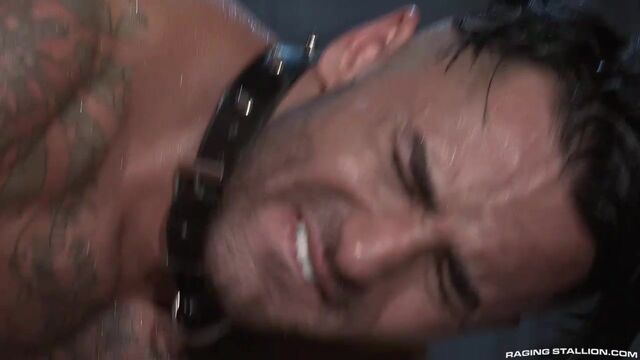 Bruno Bernal is caged in captivity, subject to the whims of his ruthless guard, Bruce Beckham. After a thwarted escape attempt, Bruce uses his enormous cock to assert his authority over Bruno. Grabbing Bruno by his hair, Bruce moves his cock down Bruno's throat. Knowing that pleasing his master is his only chance for survival, Bruno opens his gullet and delivers a gasping, deep-throated blowjob to Bruce's gargantuan member. To prepare Bruno for his initial pounding, Bruce whips out a massive black dildo and pushes it into Bruno's ass. The girth of the dong stretches out Bruno's tight muscle ring, and Bruce takes advantage of Bruno's ass by seeing how far down his tongue will fit. With Bruno's ass lubed and stretched, Bruce slams his meat between Bruno's butt cheeks and pounds him with relentless intensity. Sweat drips off their bodies and Bruno's face twists into a distorted grimace as Bruce's anal assault reaches its peak. Sinking to his knees, Bruno takes Bruce's cum in the face, then obediently jerks out his own load before being caged up until the next time Bruce wants to have some fun.