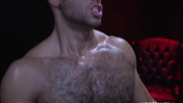 Sounds of sex echo from a dark room where Dorian Ferro is worshiping Sean Zevran's body. Sean's black mesh body suit tightly sheathes his sculpted physique. It has an opening for his balls and cock, which Dorian slurps noisily. Mirrors multiply their images so many times, you can't tell which is real and which is reflected. Backless latex briefs showcase Dorian's scrumptious glutes. The muscles of his back ripple sinuously as he moves his body continuously to better suck Sean's uncut meat. Dorian's free hand spreads his own ass cheeks and stretches his hole. Sean unzips; his torso is covered in a dense, dark mat of fur that attracts Dorian's hands like a magnet. Sean pushes him against a mirror and eats his ass, which writhes and gyrates with a life of its own. A hall leads to another dark chamber with a fucking platform where they leave their clothes behind and connect, cock-to-ass. Raw sexual energy emanates from them in waves. Their muscled, hairy chests glisten with sweat. Sean's cock pours cum as Dorian catches it in his mouth as his own load rockets forth.