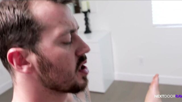 With roomie Mark Long taking a shower, Donte Thick decides now is the perfect time to make his move. Stealing his towel, Donte creeps around the corner and waits, as Mark comes out of the shower, bewildered, but naked and dripping wet. Donte confesses that he stole Mark's towel but tells him he had a reason. Mark asks him what is the reason is as he dries his face. Donte falls to his knees and quickly deep throats Mark's giant cock. Mark's eyes widen as he says 'Oh,' and Donte takes this as confirmation to keep going. He sucks Mark off until he's nice and hard, then is surprised when Mark throws him back up onto the bed and returns the favor. It seems Mark's been harboring the same urges for Donte, and as he plunges his rock hard cock deep into Donte's raw hole, he fulfill's a fantasy for both of them. He fucks Donte hard from behind, grabbing him by the waist and pulling him in closer as he thrusts his meaty cock deeper and deeper inside. Donte takes every push willingly, begging Mark to keep it up, but before Mark delivers on that promise, he wants to feel Donte inside of him, so he rolls Donte over and mounts him, sliding onto Donte's dick and riding it reverse as Donte watches Mark's ass bouncing up and down. Donte gives Mark a nice ride as Mark strokes himself off, and once he's had his fill, the dismounts and spreads Donte's legs wide open, slipping his dick inside and proceeds to pound Donte until he's ready to spit. He pulls out and coats the hole with his jizz as Donte strokes himself dry, shooting his load straight up and landing all over his stomach.
