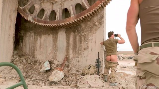 Handsome soldier Fane Roberts is assigned to his new post with fellow stud grunt Brandon Evans. After spending so much intimate time together, their attraction and feelings are undeniable. Unable to resist any longer, they secretly swap head in the barracks. Fane moans loudly as he shoots a creamy load down Brandon's virgin throat. Sergeant Zevran passes by nearly catching them in the act. Meanwhile, out in the hot desert sun, Ryan Rose and Tommy Regan are on a military patrol. There's no one around for as far as the eye can see so the Marines take off their protective gear to get more comfortable. Ryan takes it a step further and unbuckles his belt to pull his dick out of his fatigues. Tommy tries to ignore Ryan jacking off behind him and when Ryan asks Tommy to show his ass, Tommy refuses. Ryan is the commanding officer and orders Tommy to remove his pants. Tommy obeys the order and bends over to let his superior officer rim his cute, fit bubble butt. Tommy admits that the rim job feels good, and as it continues, it gets him in the mood for more action. Tommy turns around to offer up his growing erection. Ryan can't wait to get Tommy in his mouth and treats his subordinate to a nice long blowjob as he leans against a shelled-out cement wall. All the sucking gets Tommy in the mood to take a taste of Ryan's hard dick. He services the ripped stud on his knees until Ryan instructs Tommy to turn around. Ryan slips his big stiff rod inside Tommy's tight ass and has his way with him as the muscled up military jock bends over to take it deeper inside his body. Ryan keeps a steady pace and uses Tommy's perfectly fit form to get himself off. He pulls out and covers the military stud's groin and abs with a river of white and creamy satisfaction.