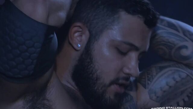 - Description: Lost in the desert Wasteland, Rafael Lords stumbles upon a mysterious compound. He thinks he's gotten lucky to find shelter, but out of nowhere, Ryan Cruz grabs him and warns him of the danger he's just stepped into. Ryan promises his protection - for a price. With one look at Ryan's ripped body and pierced nips, Rafael knows it's a price he's willing to pay. Dropping to his knees, Rafael stuffs Ryan's cock down his throat and sucks with desperate intensity. Ryan returns the favor, spitting on Rafael's cock and using his lips to stimulate the sensitive head. Saliva drips down Rafael's shaft as Ryan strokes himself. Moving to a bed, Rafael shows off his ass to Ryan, who dives in tongue first for a taste. Slicking up his cock, Ryan pushes himself into Rafael's eager ass. Rafael takes Ryan's cock doggy style, and his firm ass bounces with every impact of Ryan's powerful thrusting. Rolling over, Rafael raises his right leg into the air, allowing Ryan to pound his meat deep into Rafael's hole. Sweat accumulates on their bodies as their fucking reaches searing intensity. As Ryan stretches the walls of Rafael's hole, Rafael strokes his cock and shoots a massive, wet load all over his chest. Pulling out, Ryan busts his nut in a spectacular geyser, shooting multiple ropes of thick, ropey cum all the way across the room. After bending down for a kiss, Ryan and Rafael collapse back on the bed together, exhausted after their intense fuck session.
