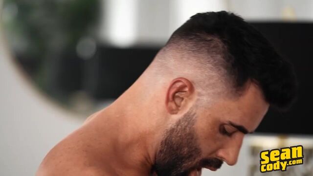 Brysen's excited to be back in the Sean Cody studio with new model Levi, and although they start out with some soft and tender cuddling, things soon start to heat up. Since he was last with us, Brysen's been taking lots of bike rides... and other rides too! "Fucking my boyfriend a lot, or getting fucked by my boyfriend a lot, that's my best hobby." Tall, muscular, and bearded Levi has a blue steel gaze guaranteed to make you melt, and he's always down for some fun. "I like all the dicks," he laughs. This top starts out showing Brysen's cock some love as he sucks and deepthroats it while teasing his hole, then fucks Brysen mish. Levi's happy to oblige when the sexy bottom asks for some choking. It's not long before Brysen's covered in cum as he blows his load and Levi pulls out to do the same right after, but Brysen's hole wants more!