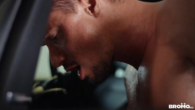 Sky Knoxx takes his car in to the garage, but when he arrives he finds Bo Sinn jacking off with a stroker, and he wants to get his hands on the mechanic's hard tool. Bo spots Sky checking out his bulge and even sniffing and licking his toy, so he gets out his cock while asking the bottom to pass him a wrench. Sky sucks Bo's dick and balls, then Bo fucks his mouth hard and deep before pounding his ass doggystyle. He lays Sky on the rolling creeper and fucks him in missionary, then the bottom rides his dick reverse. Once Sky cums as he's getting his ass bred, Bo finishes up the lube job with a big creampie.