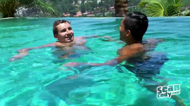 Dark-headed Asher and Southern cutie Gibson enjoy a little pool time together, chatting it up and flirting. “So Asher, what do you think is hot about me?” asks a lean and toned Gibson. “If I had to pick one thing I’d say that you have a really nice cock;