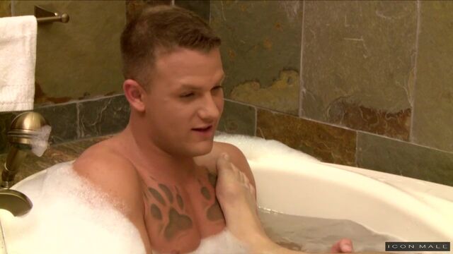 Adam Russo soaks in a hot tub with young hunk Brandon Wilde. Sipping his drink and relaxing while Brandon rubs his Daddy's feet. If Brandon wants him to help fix his Jeep, he needs to help him relax another way. Adam's possessive desires wants his boy all to himself.Adam lifts his dick out of the water, and Brandon wastes no time working his Daddy's swollen cock with his sweet mouth. Soap suds cling to its engorged shaft as he slowly sucks his way to the base. Reaching back to play with his hole, Adam's boy shows it to him and bends himself over the edge of the tub. Adam can't resist it and goes in for a taste. Driving his tongue deep into his tight boy ass, Brandon pulls him into it. Kissing tenderly, they stand before Sugar Daddy Adam reaches behind and fingers his boy sweet hole. Adam slides into his boy. Fucking his tight boy ass slow at first, he picks up in intensity.Brendan is back on his knees, worshiping Adam's stiff cock, choking himself on it's stiffness before climbing up on his Daddy and riding him on the side of the tub. Adam bends him over the edge of the tub again, pounding his ass until he blows his load all over his smooth cheeks. Fingering his boy's hole, Adam helps him cum thick ropes into the air, before Brandon licks his own spunk off his fingers.