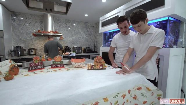It’s Thanksgiving Day, stepsons Dakota and Gabriel ask their stepdad Jax Thirio if he needs their help in the kitchen, but he tells them to go do some thanksgiving crafts and decorations. The boys get distracted and start touching each other behind their stepdad’s back, but when he turns around and catches them, he tells them they shouldn’t do that without him! Soon enough, he takes care of pleasing their holes. Boy, will they be thankful after that!