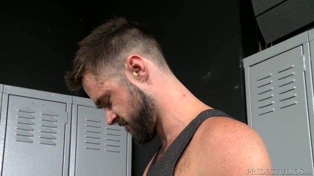 Mike and Zane are sitting in the locker room and Mike is questioning Zane on what happened with his relationship with Billy. Zane opens up and admits that the sex was not good enough and that Billy had a small cock that did not satisfy him. Seeing his opportunity, Mike makes a move on Zane and once Zane discovers that Mike has a big cock, he cannot resist. He plays with Mike's cock through his shorts at first and then pulls it out the side and starts sucking it. He does his best to take it all, but struggles a bit. Mike then pulls out Zane's long hard cock and sucks him. Mike then moves to Zane's ass and rims him for a bit before he fucks him. He starts out slow as Zane gets used to every inch of his cock and then starts fucking harder and deeper. He then flips him on his back and continues to fuck him. Needing some attention on his own ass Mike then puts a condom on Zane's big cock and rides him while Zane strokes his cock and makes him cum. Zane then shoots his load all over Mike. Enjoy!