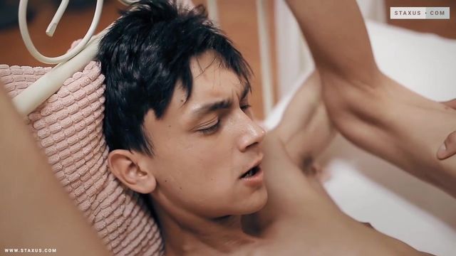 With Adam Veller tied to the bed posts, it's no surprise that Alan is going to take advantage of the situation and get his way with Adam, Starting with some manual ball stretching, them moving on to a eagerly given blowjob the excitement is served for these two hot twinks! After a bit, Alan moves Adam and ties his feet to the bed post giving him easy access to both his cock and his ass. There Alam takes full advantage of having his ass exposed to rim and finger the boys hole, before fucking him and making his hole gape. Needless to say, Alan takes full advantage of having Adam in a submissive mood, giving him a facial ending that's hard to miss!