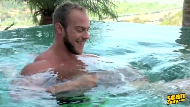 Brock and Robbie frolic in the pool and fuck on the bed - Sean Cody