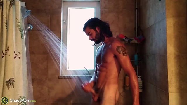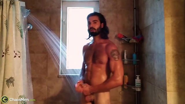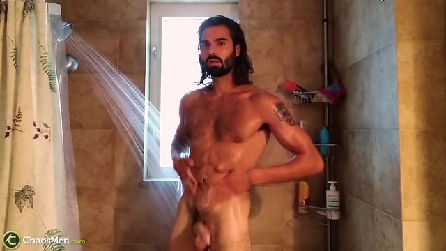 Long-haired hunk Jean Dubois jerking off in the shower - Chaosmen