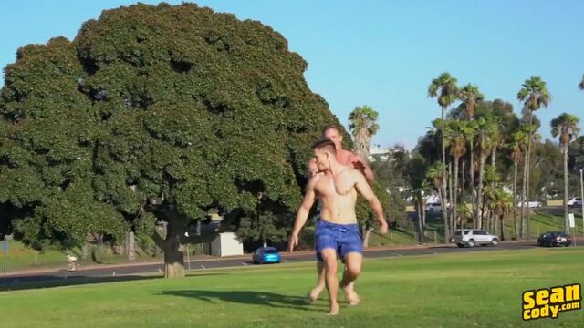 Tall, muscular Jax and ripped cutie Dean are spending the day in the park getting to know each other a little better. “I’ve been real excited for this pairing. I’ve seen him, and he’s a bit of a champ. Very athletic! I’d love to see what he can do in the bedroom,” says Jax. “I’m real excited to see what else you got going on. I’ve seen what you got down there from previous films. Let’s see what I’m up against,” says Dean. “Let’s see how he handles the homerun. Hopefully you don’t strike out!” replies Jax. “I think I’ll manage just fine. We’re gonna pull through!” answers Dean with confidence. “It turns out we’re both plumbers so we’re both laying pipe today!” says Jax excitedly. “Let’s do this already!” replies Dean.