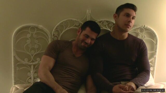 Witness a true intimate encounter between porn power couple Billy and Seth Santoro. With absolutely no holding back, hot real_life passionate bareback sex follows an interview that fans won't want to miss. From the physicality of first impressions to the nurturing nature of unconditional love.Pulling his shirt over his head, Seth reveals his pert nipples on a smooth muscular chest. Pulling his husband close to him, Billy kisses his husband from top to bottom, kissing his smooth stomach, his hand caressing his abs up and down. Billy carefully pulls off Seth's pants, exposing toned thighs lightly dusted with hair. Sliding off his partner's briefs, his thick lips savor Seth's stiff rod from base to tip before taking his whole cut cock into his mouth. Seth grabs his husband's ass, before he takes Billy's shaft in hand, working his lips up and down over Billy's domed cockhead. Billy giving his husband earnest glances before kissing intently, Billy pulls Seth's thighs closer to him, urging him into a humping motion. Seth penetrates his hairy hole, pushing into him as Billy thrusts back onto his stiff rod. Billy climbs on top, riding his husband bareback, his hips rocking back and forth as his ass strokes the raw cock inside him. Propping billy up with a pillow, Seth fucks his muscular bottom with an increasing tempo. Pulling Seth into him encouragingly, the intensity builds to a crescendo, passionately making out before Seth pulls out and shoots all over Billy's abs. Seth light rubs Billy's chest and abs, Billy trembling with intensity as he cums his thick load onto his own stomach.