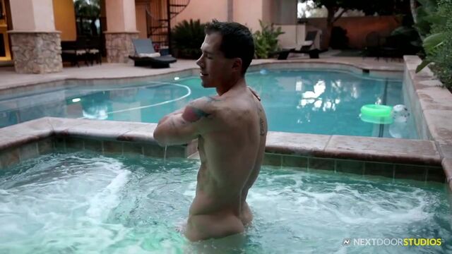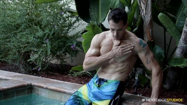 Shredded hottie Austin Hunter jerking cock in an outdoor pool - Nextdoor Male