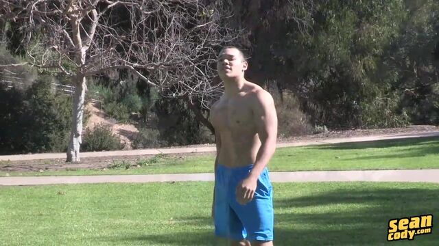 Muscular ebony hottie jerks his BBC and cums profuesly - Sean Cody