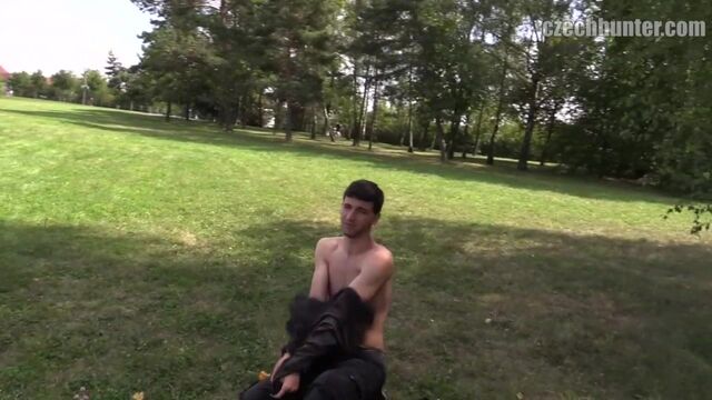 - Description: I wanted to experiment a little today. I went to a large park full of people and looked for boys. This time I avoided groups and searched for lone guys. I met a student of veterinary medicine named Lukas. I talked him into showing me his cute body. But I had much bigger task for him. I wanted a threesome and Lukas was supposed to find and convince another guy to participate. It wasn´t easy but finally we ran into a former lifter who had a very nice body and was willing to consider our offer. I was very horny and not willing to wander around looking for the "perfect" spot. I took them both behind the bushes right next to a path full of people. The boys were very inexperienced and shy, which made the action very sexy. Then I drilled both their holes.