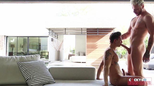 Our second Cocky Boys Fans Only scene is also a new Redux scene with Ricky Roman & Josh Moore! Ricky & Josh have been dating since they met on set and now they're ready to show a new level of intimacy...condom free! In no time they go from kissing in the pool to Ricky sucking on Josh's thick monster and deep-throating him....thanks to months of practice. Just sucking Josh and knowing he's pleasuring him makes Ricky hard and it's the same for Josh when he lies Ricky on his back and sucks him.Ricky is soon flipping over on all fours, his gorgeous ass up in the air for Josh, whose mouth and tongue probe the depths of Ricky's tan, muscled mounds. He teases Ricky with his cock but his mouth returns to feast on his hole and his cock. But soon the urge to fuck is too strong and hold off any more. Josh enters Ricky who in turn takes him in with lustful enthusiasm. Knowing each other so well makes it easy for them to go into full force, deep pleasure fucking with Ricky unleashed vocally.They change it up with Ricky sitting on Josh's cock and riding him and just as quickly they find a position that brings them even closer to mutual pleasure. However they're not even close to showcasing their chemistry and sexual dynamics. Ricky moves into a multi-faceted reverse cowboy position an then rides the sofa's arm as Josh thrusts into him deep. This time Josh doesn't stop until he pulls out and explodes over Ricky's hole and licks up his own thick load. Still in full power mode Josh gets Ricky on his back, kisses him as he jerks his cock and makes him cum almost effortlessly. The cum hungry top slurps up Ricky's load and they share a kiss, expressing the affection you just know is real.Enjoy,Jake Jaxson