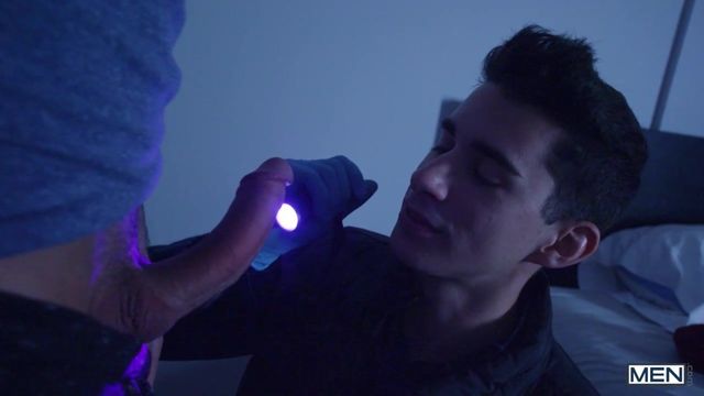 The Sticky Sadist has struck again, jizzing all over Raphael Louis's roommate's underwear, and CSI Jake Nobello is here to check it out. The Cum Spotter Investigator has never seen anything like this as he shines his UV light around the semen-streaked room, and the still-wet trail of cum leads him directly to the perp... Raphael! Jake sucks Raphael's cock, and then the Sticky Sadist himself swallows the CSI's dick before fucking him doggystyle. Jake rides the criminal's cock, adding his own cumshot to the scene as Raphael pounds him in missionary before collecting a load of DNA evidence on his face.