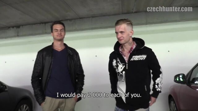 Submissive Czech gays working over the same cock in POV - Czech Hunter