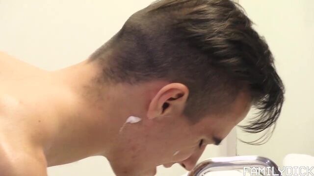 - Description: The first time I learned how to shave, I made a mess of the sink, not to mention my face! If only I’d been as lucky as this young guy to have such an attentive stepfather figure to show me how! Well… I’d probably still be lost, given that I wouldn’t have been able to take my hands off my old man’s dick! Fortunately, this boy seems to be a ways from having to sacrifice one for the other! When the boy’s handsome, scruffy stepdad catches him trying to shave off his peach fuzz, the older man can’t help pop a boner thinking of his young boy growing up. Especially when he’s in just a towel! In the privacy of their bathroom, horny stepdaddy decided to teach his boy something else that comes with manhood: taking his stepdad’s bare cock! Between their big dicks and spilled seed, it looks like they’re making their own mess of the sink!
