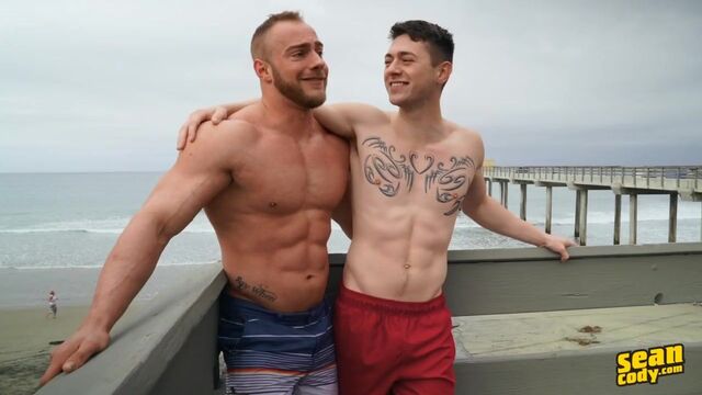 Brock the jock and power bottom Lane enjoy a day in the surf, hanging out by the pier. Lane’s is excited to “crush another Sean Cody film,” well actually he’s excited for Brock to crush it. Lane claims he’s “just going to be sitting there, but Brock laugh