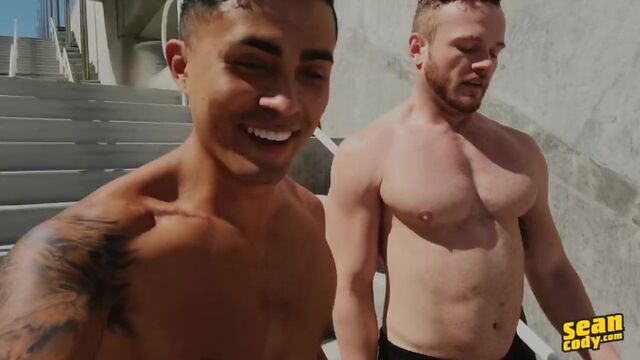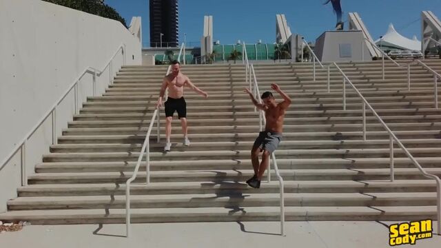 Sean and Asher hit the stairs hard, training their sculpted bodies before getting hot and sweaty in the gym. “From what I hear he has one of the biggest dicks on the site,” says Asher. “I cannot wait for him to destroy me.” “Usually when I’m fucking anoth