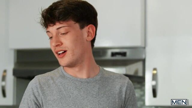 Dereck Thibault is feeling horny, and his hand just isn't doing it for him, but every time he tries using something around the apartment to get off, his roommate, Edward Terrant, comes in and stops him. Edward shuts Dereck down when he's fucking a pillow and then a watermelon, but when he finds Dereck with the vacuum cleaner on his cock head, he replaces it with his mouth! Getting his dick sucked and his balls licked is just what Dereck needed, and soon the blue-eyed twink is riding his big cock! Dereck fucks the bottom doggystyle, then pounds him in missionary. Edward takes a big facial, then blows his own load on the melon before he and Dereck sit back for a little post-coital snack!