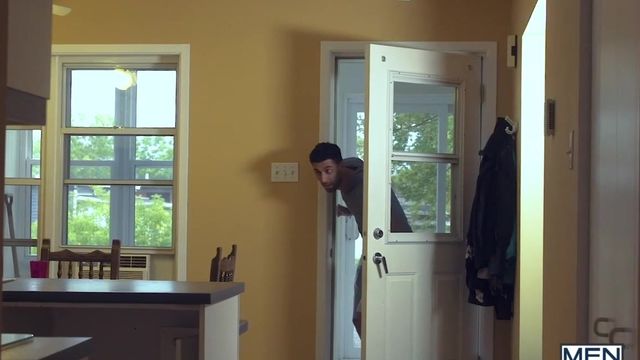 Alex Fortin arrives home and leaves the back door open. Mick Stallone sees this as the perfect opportunity to sneak in and watch him while he's masturbating. He gets caught and now he's the one with the back door open and ready to be entered.